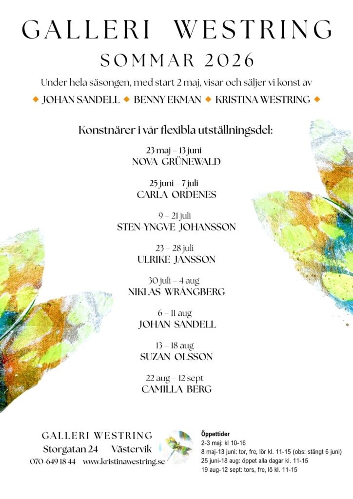 I vårt ljusa och inbjudande gallerirum, på Storgatan 24, visar och säljer vi verk av både etablerade och nya konstnärer, med särskilt fokus på det lokala.