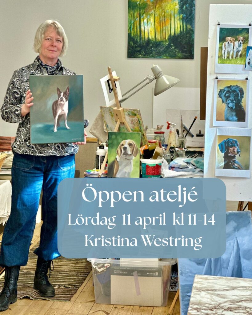 Kristina visar sina senaste hundporträtt, svarar på frågor och du har möjlighet att beställa djurporträtt.